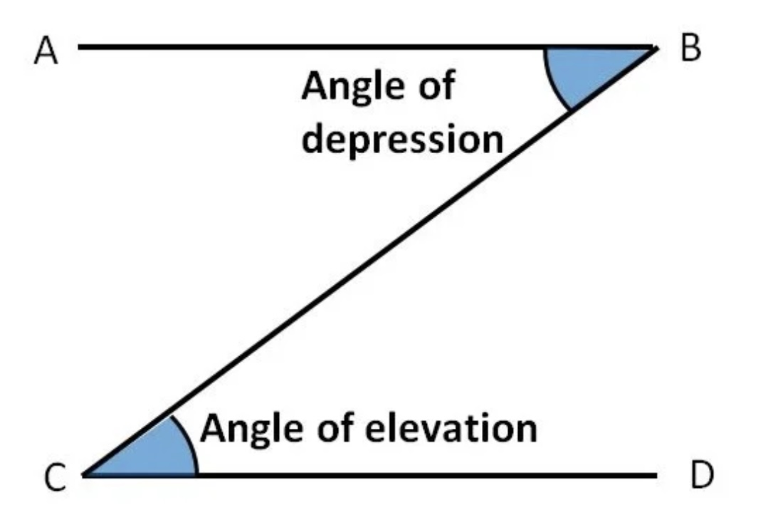 Many applications of trigonometry will include the angle of elevation and the angle of depression which are formed by two parallel lines cut by a transversal.
